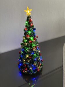 Und ein schöner (sogar „bunter“) Christbaum, der in verschiedenen Lichteffekten betrieben werden kann. Obwohl meine Liebste immer „bunte“ Lichter bisher strikt abgelehnt hat (weil „kitschig“) wird dieses Bäumchen in diesem Jahr Einzug halten.