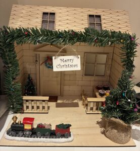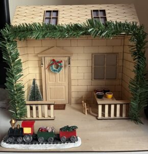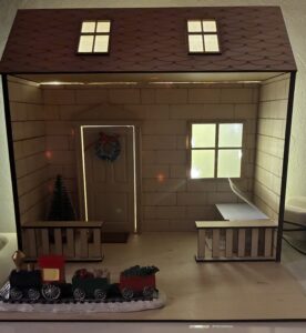 Die Mama- also meine Tochter-, bastelte dann flugs (weil basteltechnisch und gestalterisch extrem begabt) eine „Wichteltür“ oder besser ein „Wichtelhaus“ (siehe Bild) damit der Wichtel auch beim Opa einziehen konnte.